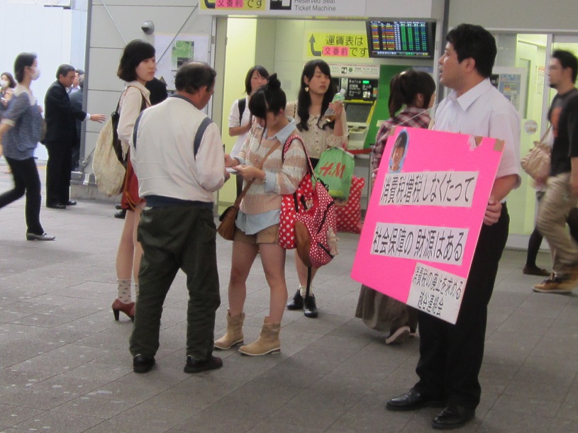 午後5時から南越谷駅で、日本共産党も参加する消費税廃止越谷連絡会の毎月定例の宣伝行動がありました。