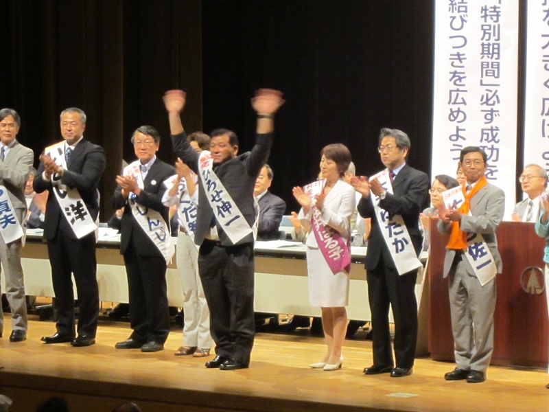 衆議院選挙北関東ブロック比例候補の塩川鉄也衆院議員と、予定候補の梅村さえこさんのあいさつに続き、埼玉3区の広瀬氏を含め、埼玉、群馬、栃木、茨城4県の小選挙区予定候補が紹介されました。