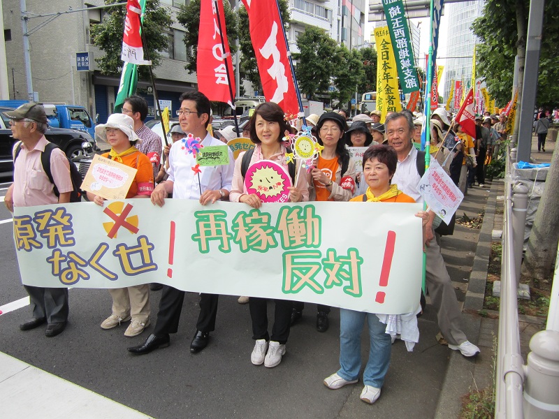 埼玉のデモ隊の先頭には、北関東比例区予定候補の梅村さえ子氏の姿も。