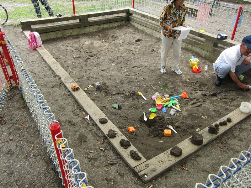 1、砂場の砂が減っていたため、補充をお願いしました。