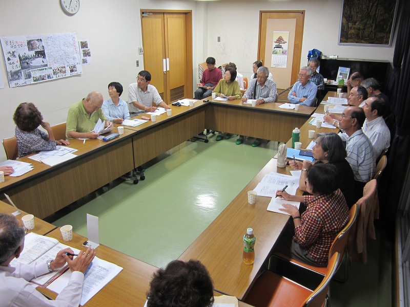 平方地域に住む有志の人たちで作っている「平方公園を考える会」が、市の公園緑地課長をはじめ3人の職員さんにも来ていただき、懇談会を開催しました。