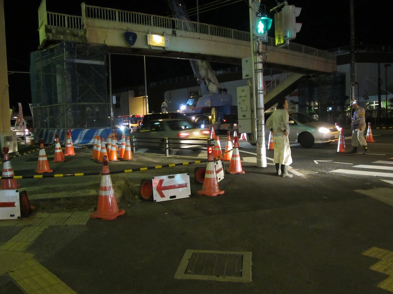 駅前通りと国道4号線の交差点の歩道橋の撤去工事がおこなわれています。