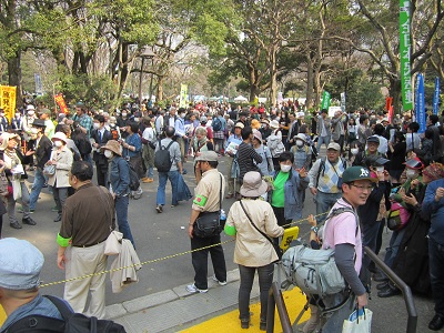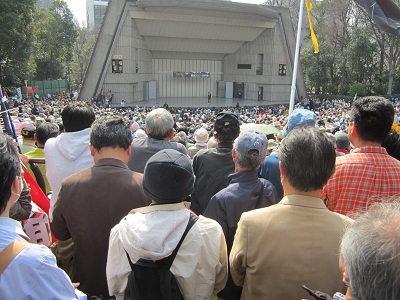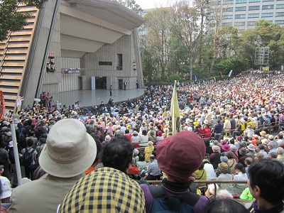 午後の日比谷野外音楽堂は超満員で、入場制限がかかるほどでした。