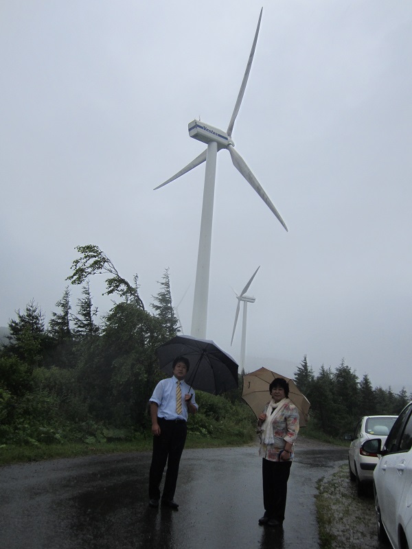 風車の前で…晴れていれば10基以上が見えるはずとのことでした