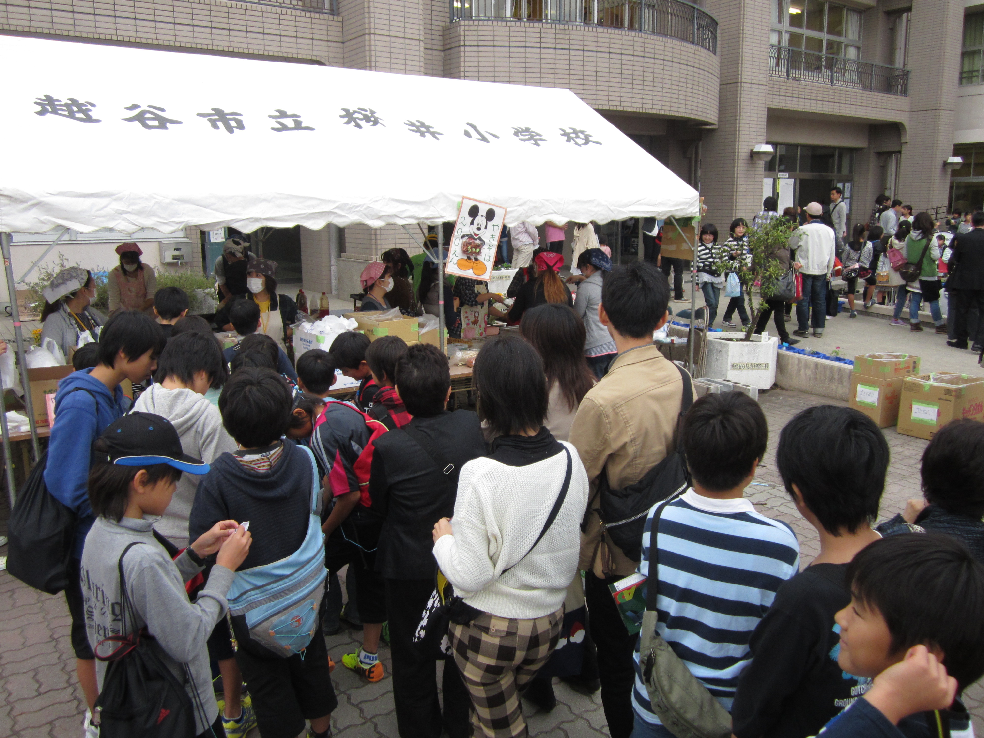 子どもたちの演奏や校長先生、PTA会長さんの挨拶があり焼きそば等の販売が開始されましたが、ものすごい行列になっていました。