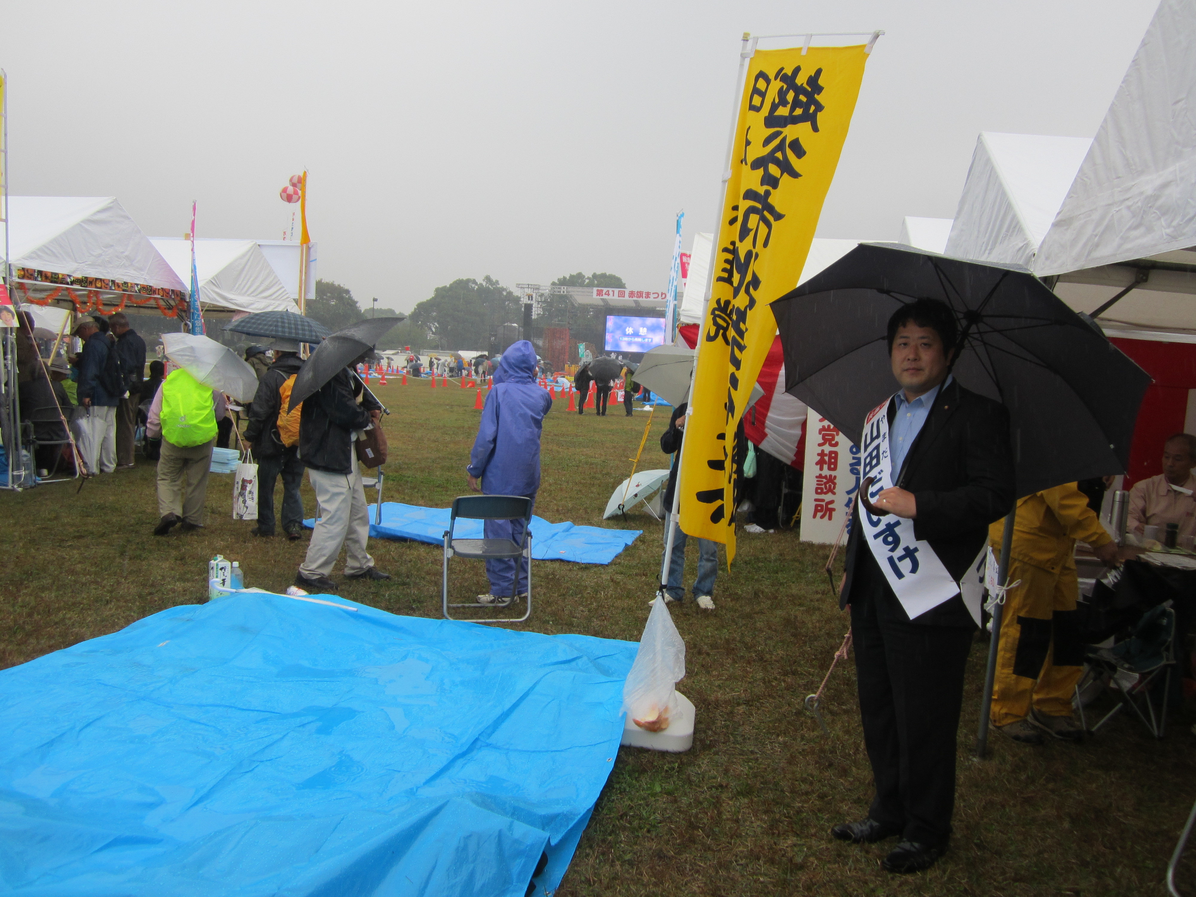 午前10時ごろにバスが会場に着いた時には、いったん雨が上がっていて、これはきっとみんなの日ごろの行いが良いからだ!と思いましたが、僕の日ごろの行いが良くなかったようで、11時くらいから14時くらいまで、超土砂降りとなってしまいました…。