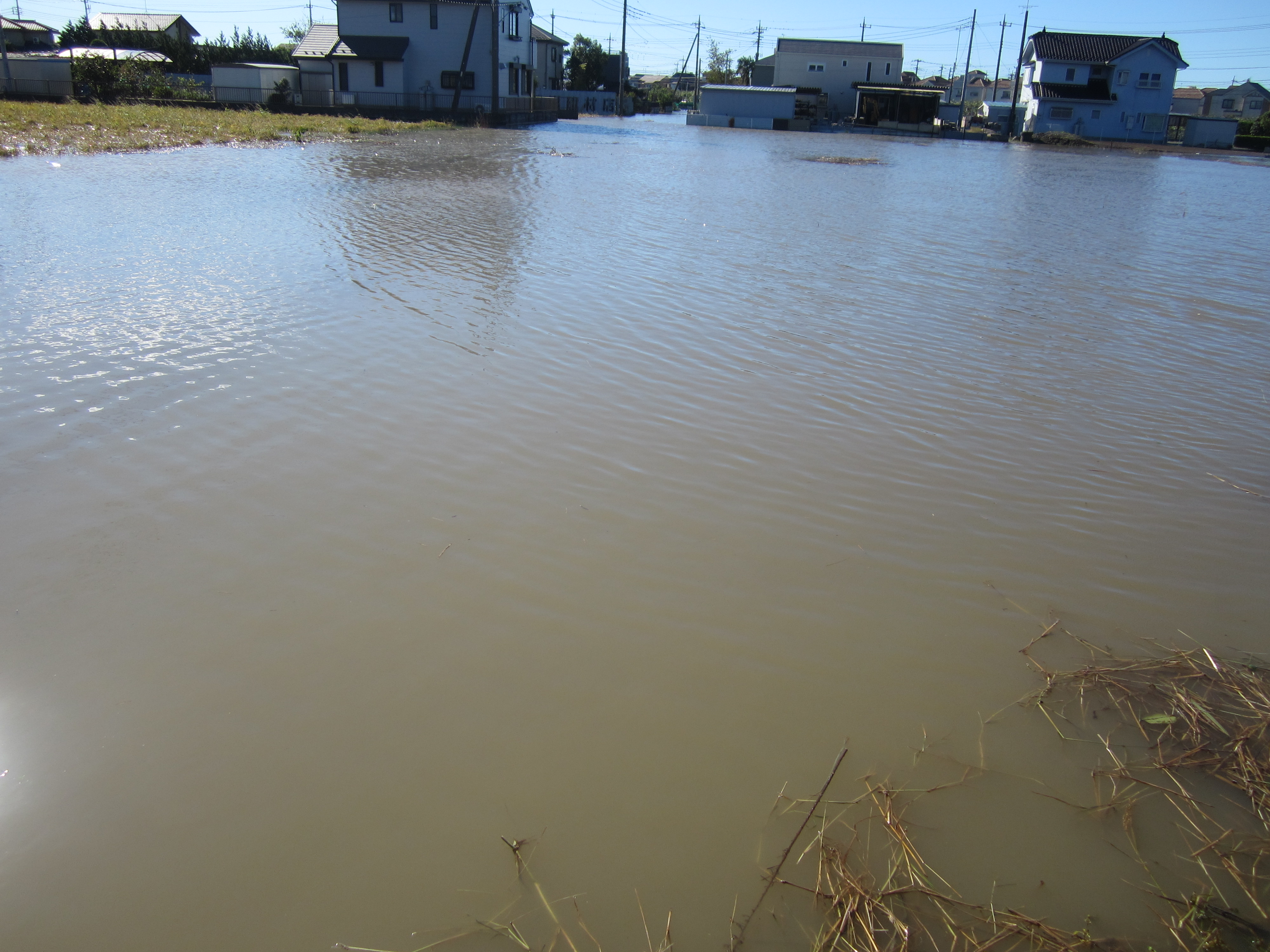 間久里新田橋から北陽中へ向かう方向でここもまだ冠水していて通行止めになっています